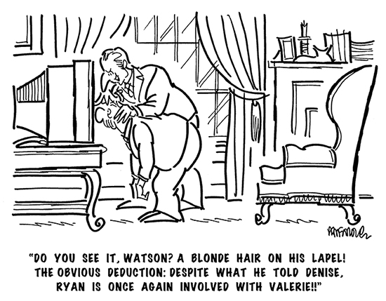 I used to do a lot of magazine gag cartooning back in the 80’s. I’ve always been a big Sherlock Holmes fan, and I enjoyed working Holmes and Watson into some gags. Stumbled across this one the other day and it made me laugh. Pretty stiff-looking