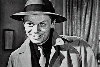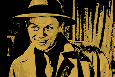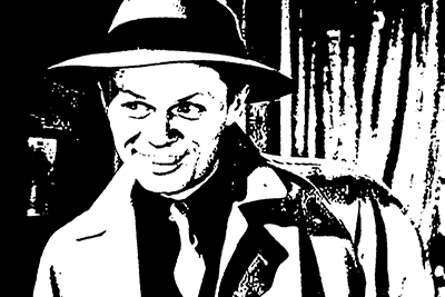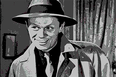 Here’s a Photoshop technique for transforming a B&W photo into a bright pop-art image. It restricts the colors to a very narrow range (in this case, yellow-orange). I began with a B&W movie still of Richard Widmark in his movie debut, playing giggling killer Tommy Udo in the 1947 film noir classic, Kiss Of Death: