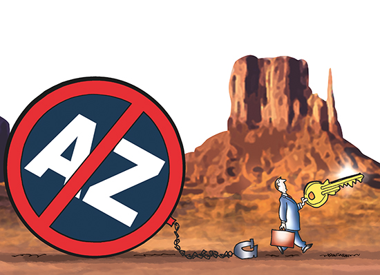 An illustration for Successful Meetings Magazine, commissioned by award-winning art director Jennifer Ruf. It was for an article which made a strong case for not boycotting Arizona-based conventions because of the state’s new immigration law.