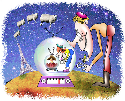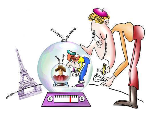 color portion of the second figure.fashion designers with crystal balls picking up signals from Eiffel Tower