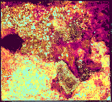 The sensible thing at this point would have been to insert the above texture behind my image, seen how it looked, and made color adjustments accordingly. But I was reckless. I applied a Hue/Saturation adjustment to the texture as is, without putting it in context. I experimented with different settings and finally settled on this result: