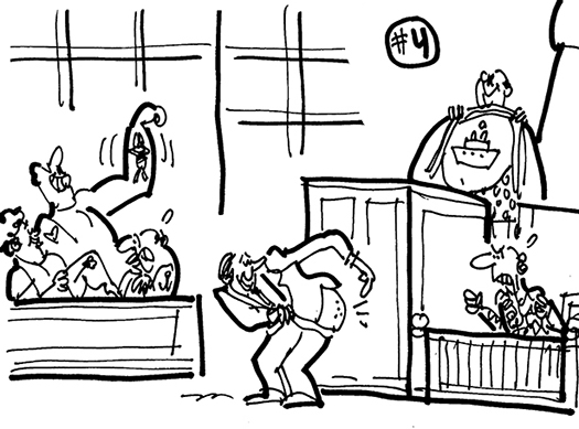 Every month, I do an illustration for the Strange Suits feature in Inside Counsel Magazine. They send me capsule descriptions of four lawsuits. I do a rough sketch