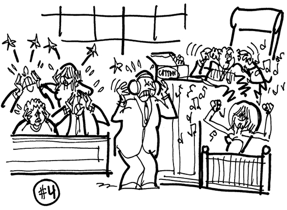 Time for more courtroom humor. I illustrate a monthly humor feature called Strange Suits for Inside Counsel Magazine. They send me four cases, I sketch out an idea for each, they pick the one they like best.