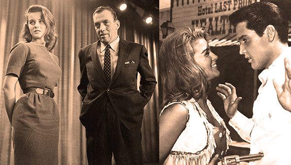 Below left: a very young Ann-Margret with television host Ed Sullivan on the set of his variety show. Right: with Presley on the set of Viva Las Vegas.