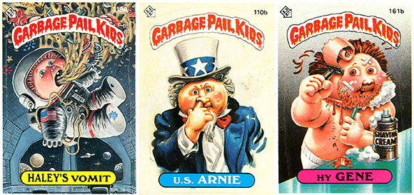 What’s a Garbage Pail Kid, you ask? They were trading cards originally released in 1985. Each card featured a kid doing something disgusting, or as the serene victim of some horrible fate.