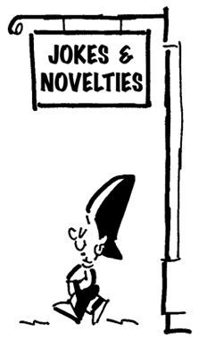 Note: the above gag only makes sense if you’re familiar with an item called a joy buzzer. I never had one, but when I was a kid, I used to see them advertised in every comic book I ever bought.