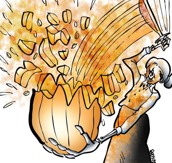 Hi, Jean! I hadn’t considered pumpkin carving as a spectator sport. I can see it now: a TV show called Carving With The Stars. Lots of loud music and flashing lights, and all the contestants would have to wear skimpy outfits. Celebrity judges could dissect the jack o’lanterns (verbally), and give each one a score. When someone got voted off the show, their pumpkin would be smashed.