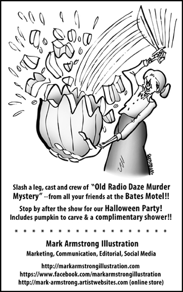 So they gave me a free ad in the program for their latest show, a comedy about murder at a 1940’s radio station. It opens tonight, on Halloween.