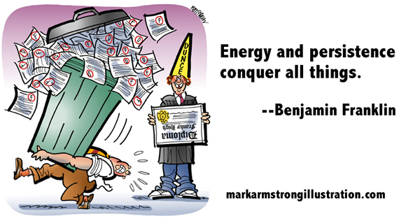 Here’s another example of creative recycling. The image is an old editorial illustration. I’ve forgotten the related news item, but the image seemed like a fun fit for this Ben Franklin quote about the value of persistence.![]()
