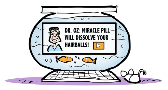 blank vertical space, 32 pixels highHere are a few detail images that make it easier to read the fine print.blank vertical space, 32 pixels highFishbowl computer with Dr. Oz banner ad for miracle pill to dissolve cat hairballsblank vertical space, 24 pixels highFishbowl computer with popup ad saying your computer has worms click button to de-worm now or no thanks I don't careblank vertical space, 24 pixels highcat watching Dancing With The Starfish on Cat Toys & Joys website as example of entertainment content marketingblank vertical space, 16 pixels high