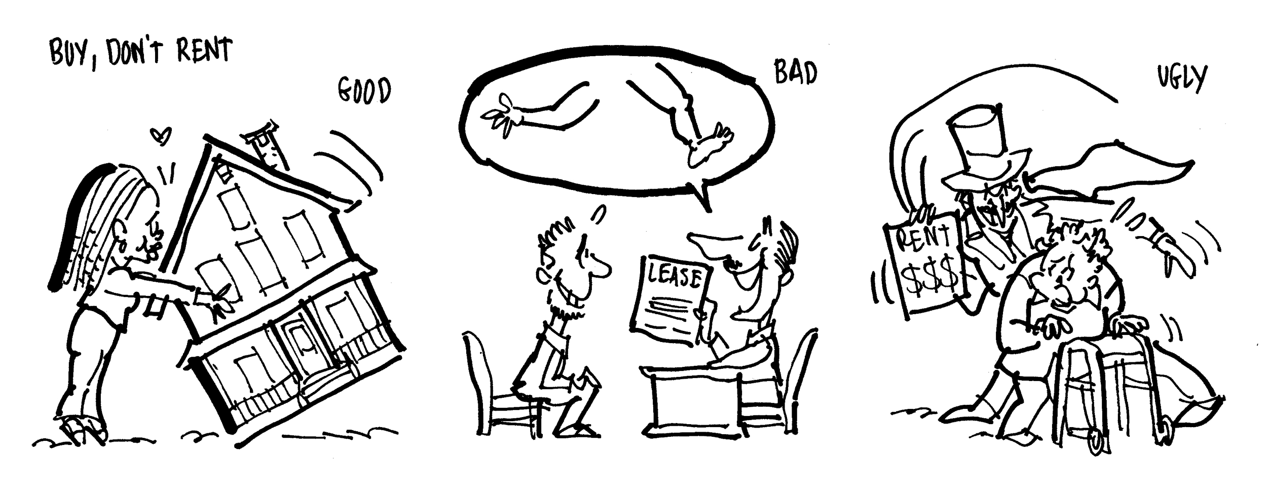 Strategies: Buy a house and accumulate wealth; pay an arm and a leg for an apartment; have Snidely Whiplash show up each month to collect the rent when you’re old.![]()