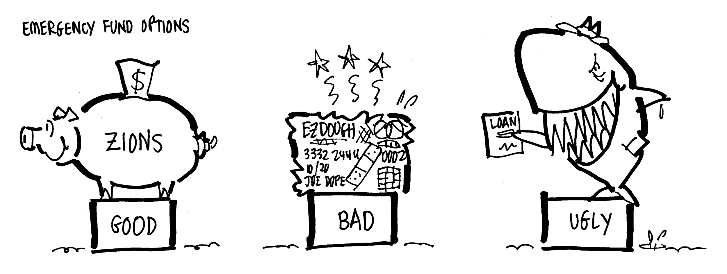 Emergency Fund Strategies: feed the piggy bank, max out your credit card, see a loan shark.![]()