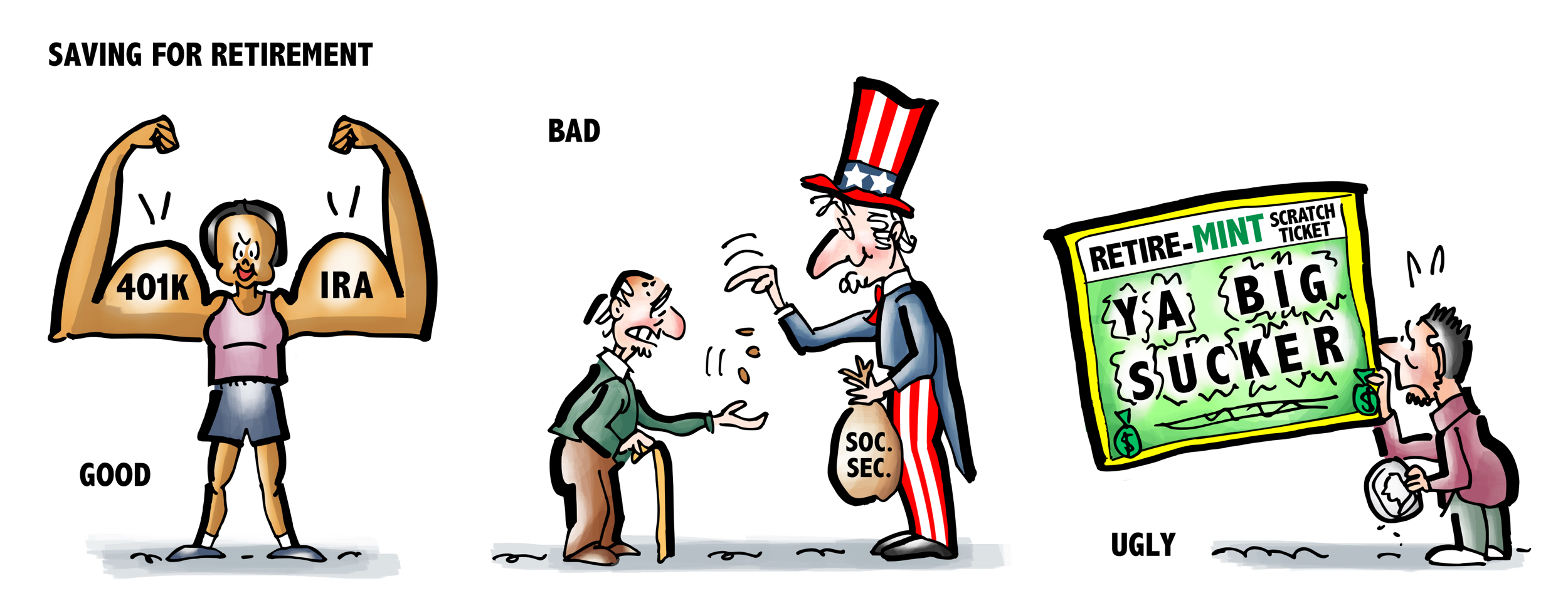 And here’s the original rough sketch for Saving For Retirement:![]()