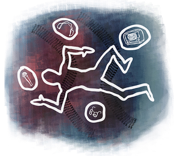 For an essay on remembrance, inspired by symbols (microphone, headphones) seen on a stranger’s grave.
